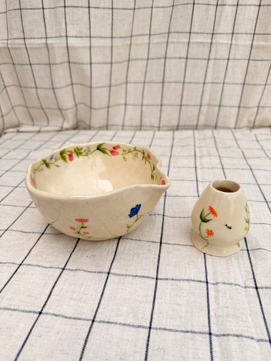 Floral matcha pourer+ whisk holder