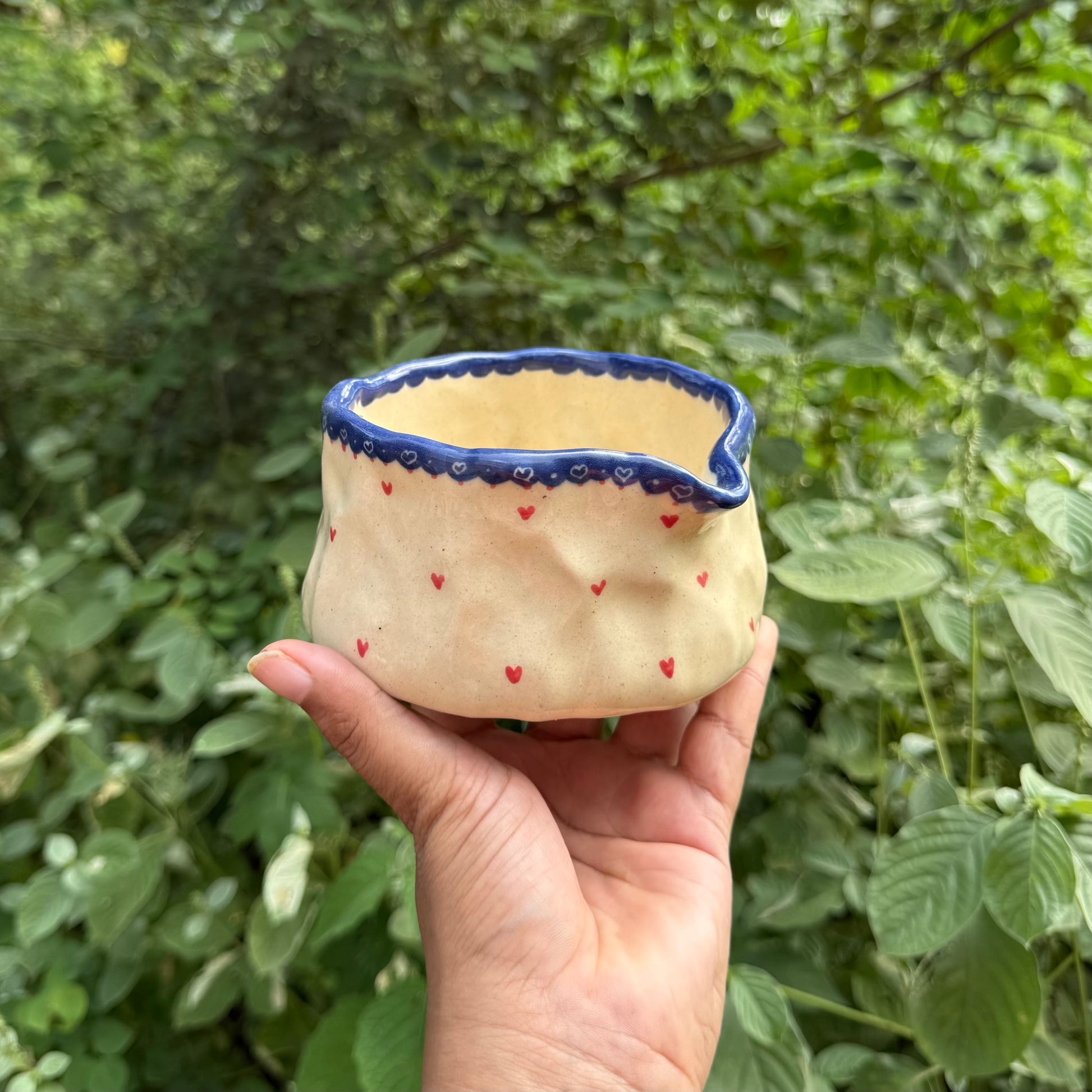 All Vyakhya Ceramics pieces are made with commercial glazes that are lead free, food safe and microwave and dishwasher safe, unless indicated otherwise. Hand washing is recommended. Ceramics is a material with a low absorption rate, so it is recommended to not leave liquids in the cup for longer than 24 hours.