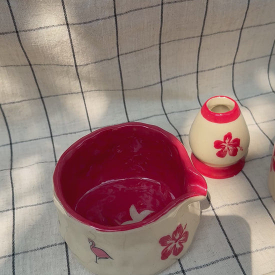 All Vyakhya Ceramics pieces are made with commercial glazes that are lead free, food safe and microwave and dishwasher safe, unless indicated otherwise. Hand washing is recommended. Ceramics is a material with a low absorption rate, so it is recommended to not leave liquids in the cup for longer than 24 hours.